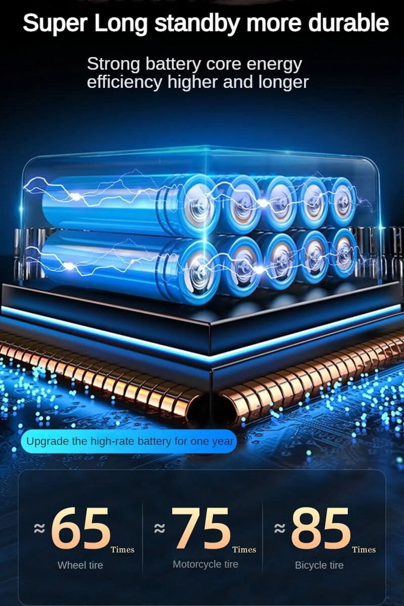 Built-in 6000mAh large battery. It can inflate 4 car tires from 0-36 PSI or 12 car tires from 28-36 PSI on a single charge. Besides, 5V/2A Type-C input and 5V/2A USB output port, make it an emergency power supply for your phone.