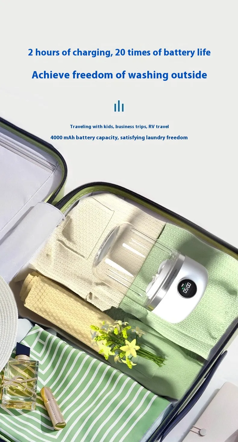The Portable Underwear Washer Rechargeable Cordless Mini Washing Machine is a compact, lightweight laundry device engineered for washing small items quickly and effectively. It features a rechargeable battery, LED display for intuitive control, and a powerful internal motor that spins and cleans gently but thoroughly. This mini washer fits easily in luggage, backpacks, RVs, dorm rooms, apartments, and camper vans — making it perfect for travel and everyday convenience.