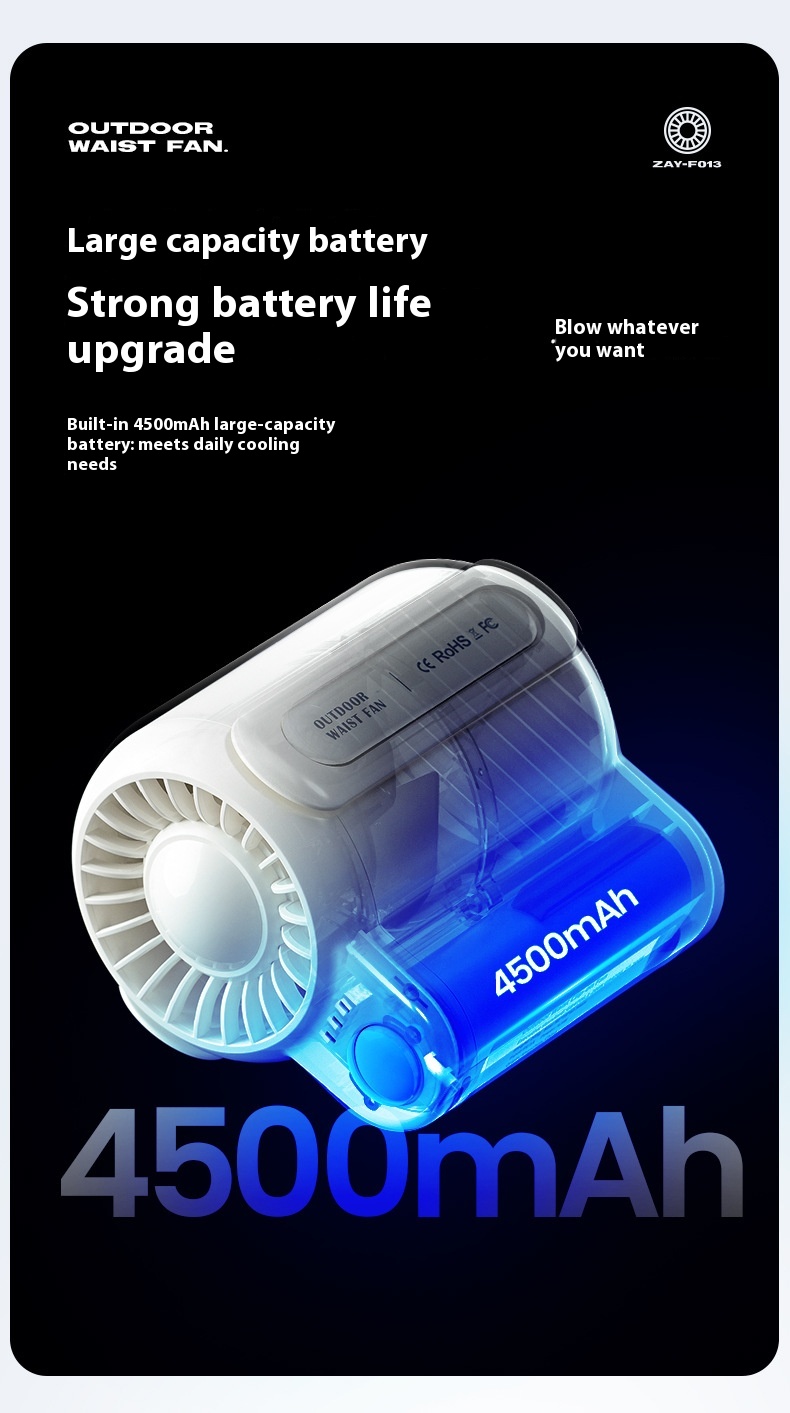 3. Reliable Material: Equipped with a robust 4500mAh battery, our waist fan provides enduring relief, even in extreme conditions, thanks to its high-quality build.