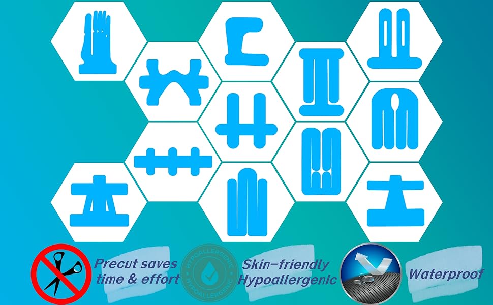 - Pre-Cut Design: Each pack contains 10 pre-cut strips, specifically shaped for optimal knee support and easy application.