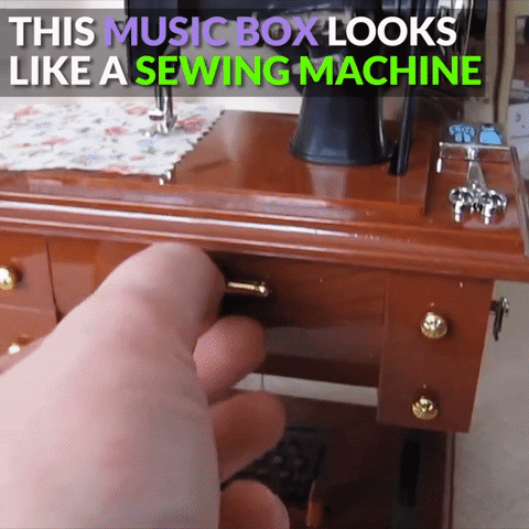 - Creative sewing machine design music box, the shape of a vintage treadle sewing machine
