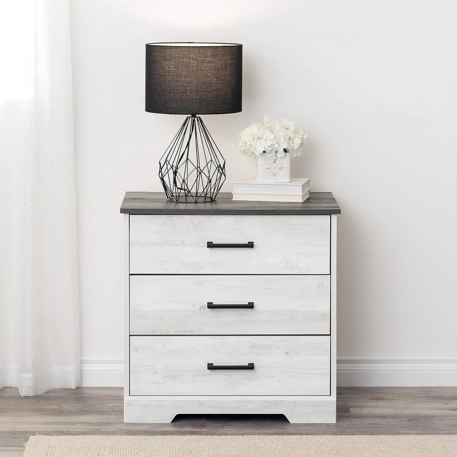 The Prepac Rustic Ridge Farmhouse 3-Drawer Nightstand in Washed White is an essential piece of furniture for any modern or rustic-themed bedroom. Its ample storage space, elegant design, and sturdy construction make it a perfect addition to your home. Whether you need a nightstand, side table, or storage cabinet, this versatile piece provides the perfect combination of style and functionality. Invest in this farmhouse nightstand to enhance your room's organization and enjoy the beauty of rustic design.