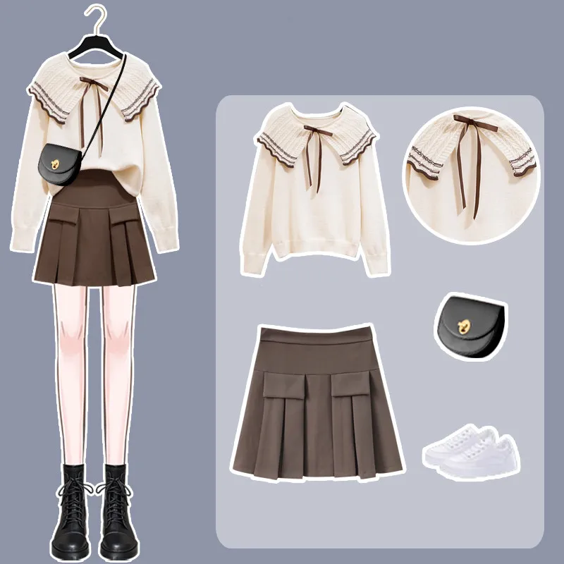Preppy Sweater with Pleated Skirt Suit – Classic Elegance Meets Modern Comfort