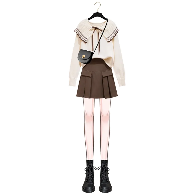 Designed with versatility in mind, the Preppy Sweater with Pleated Skirt Suit is ideal for layering, making it perfect for all seasons. During cooler months, you can easily pair the sweater with tights, boots, and a warm jacket for extra warmth. When the weather turns warmer, the outfit remains light and breathable, allowing you to wear it comfortably without feeling too hot.
