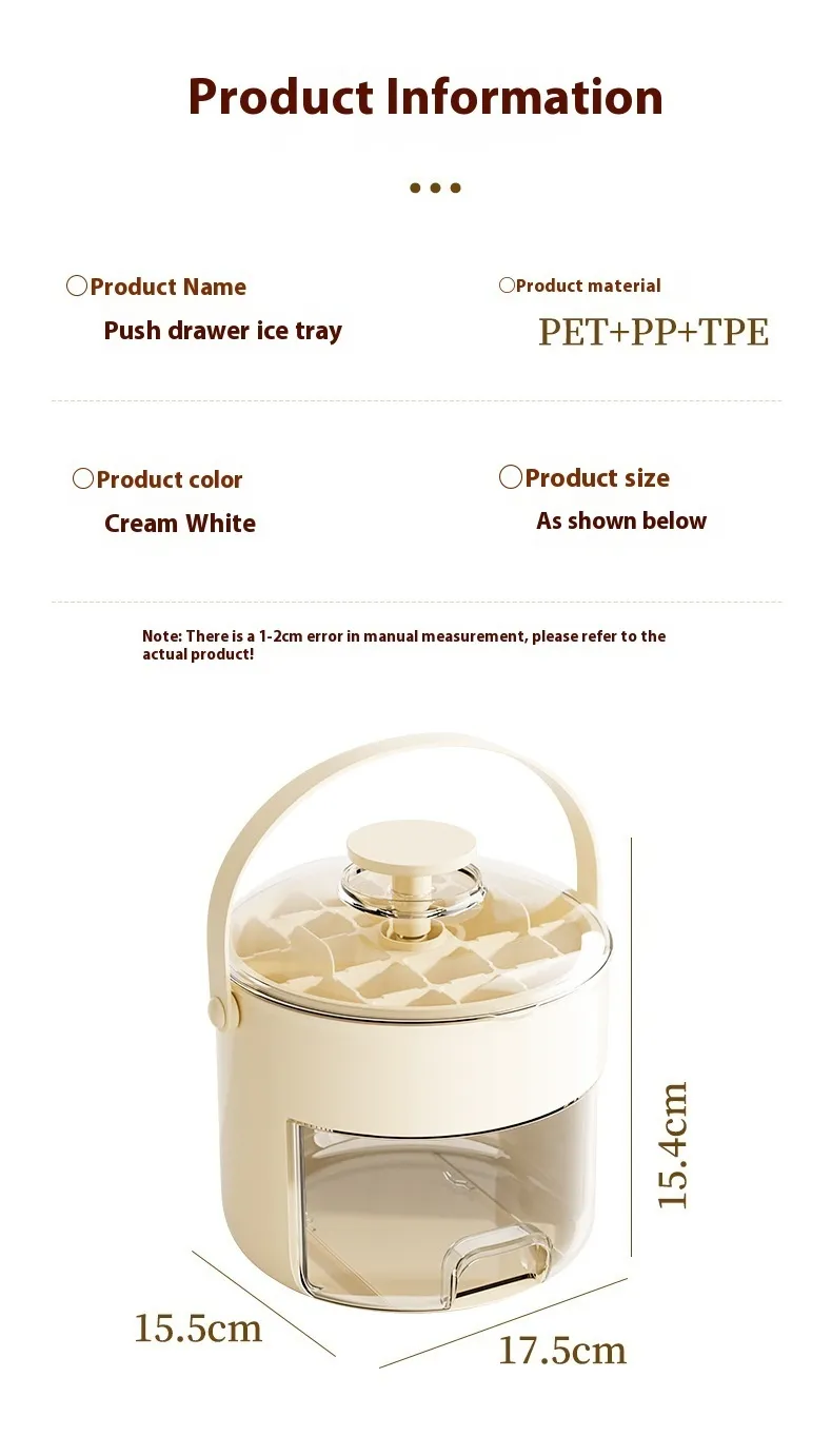 The Press Ice Cube Mold Large Capacity Ice Maker is the perfect solution for anyone who enjoys cold, refreshing drinks with large, slow-melting ice cubes. With its easy-to-use press mechanism, durable materials, and large capacity, this ice maker ensures you can make ice quickly and efficiently. Whether you're hosting a party, enjoying a cocktail, or just need ice for everyday use, this mold helps you create perfectly shaped ice cubes with minimal effort. Upgrade your ice-making game with the Press Ice Cube Mold Large Capacity Ice Maker and enjoy perfectly chilled drinks every time.