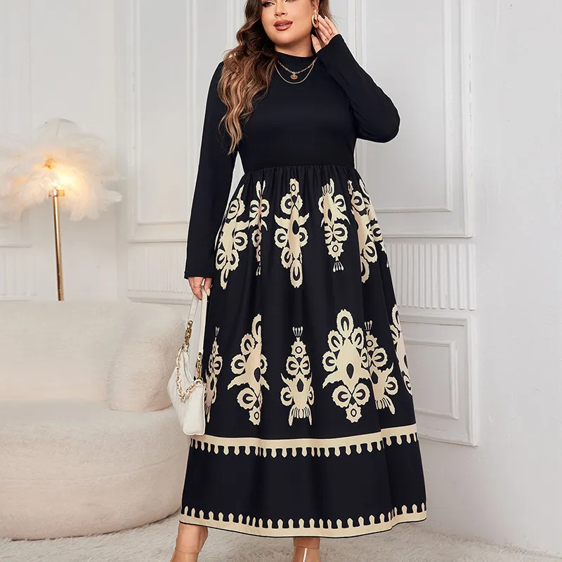 Why Choose the Printed Black Plus Size Loose Long Sleeve Dress?