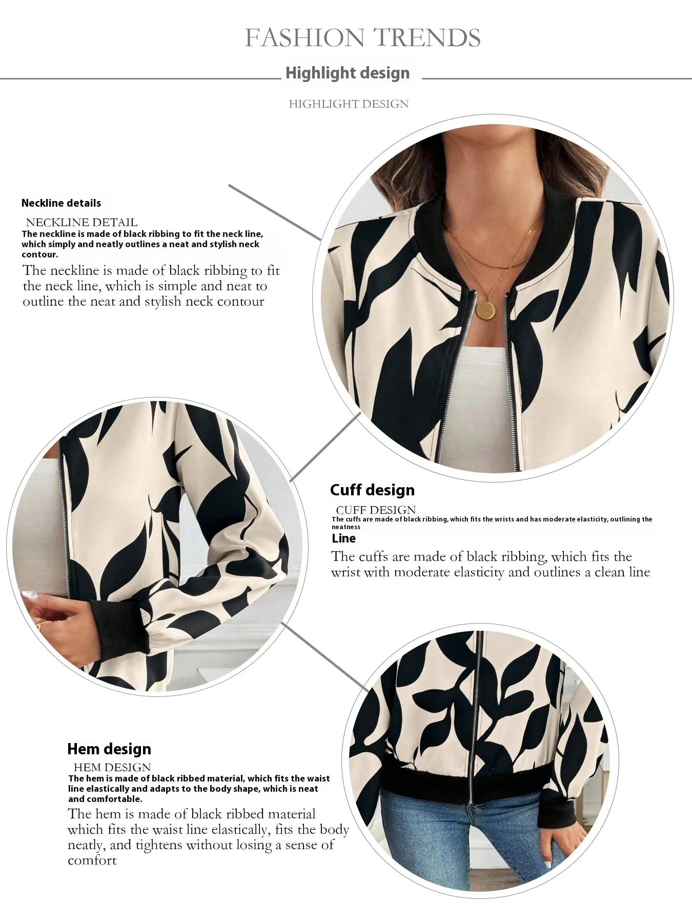 Chic and Trendy Look: The printed design and slimming fit make this jacket a stylish