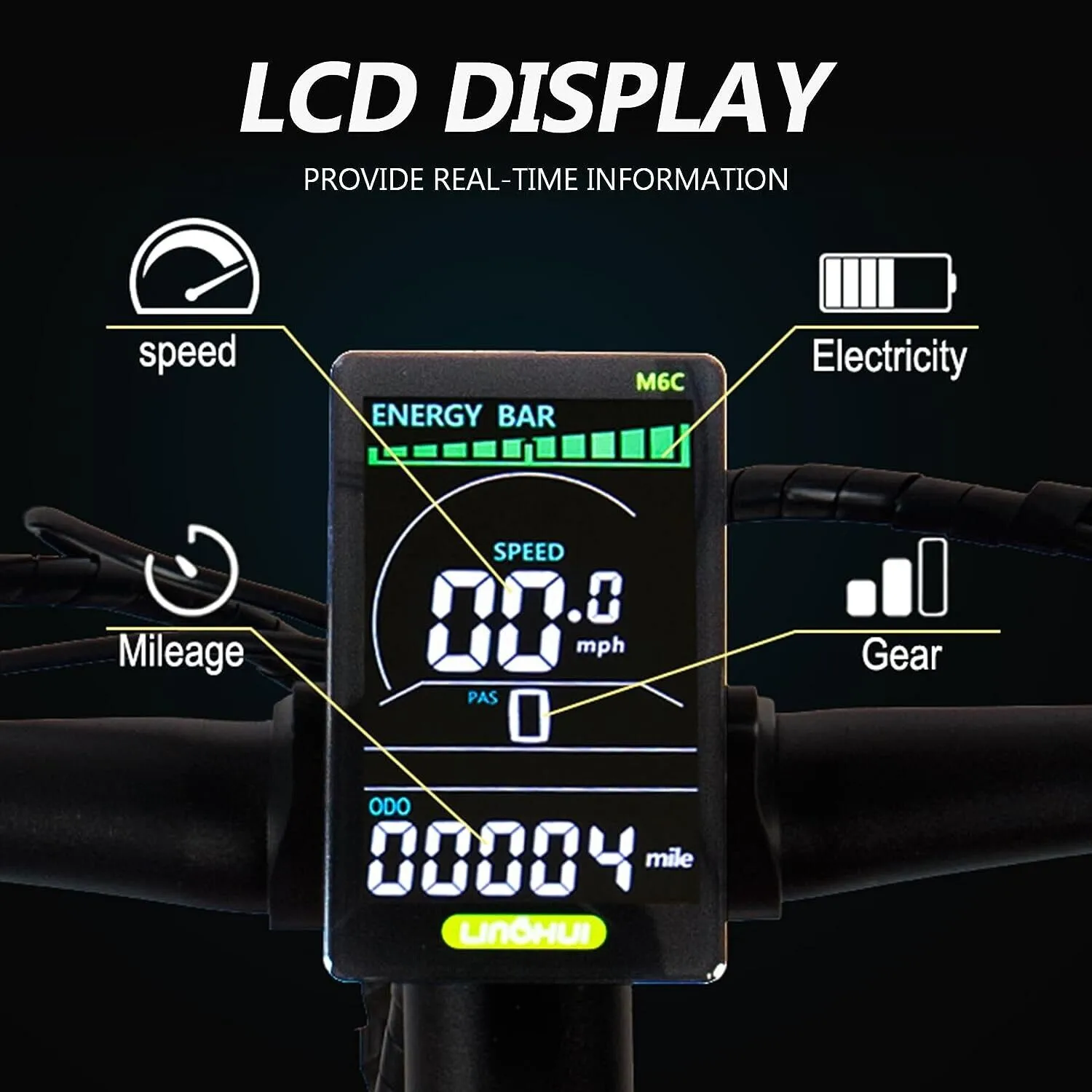 Upgrade Smart LCD display,Speed Data, Assist level,Battery Indicator, Mileage display. The multifunctional big screen LCD Speed Shifter display enables easy reading in day and night.