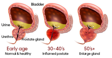 Because the prostate gland tends to grow larger with age, it may squeeze the urethra and cause problems in passing urine. Sometimes men in