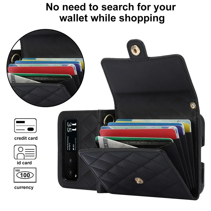 For Motorola Razr 40 Case PU Leather Crossbody Lanyard Holder Magnetic Snap Wallet Phone Cover For Motorola Moto Razr 40 Razr40