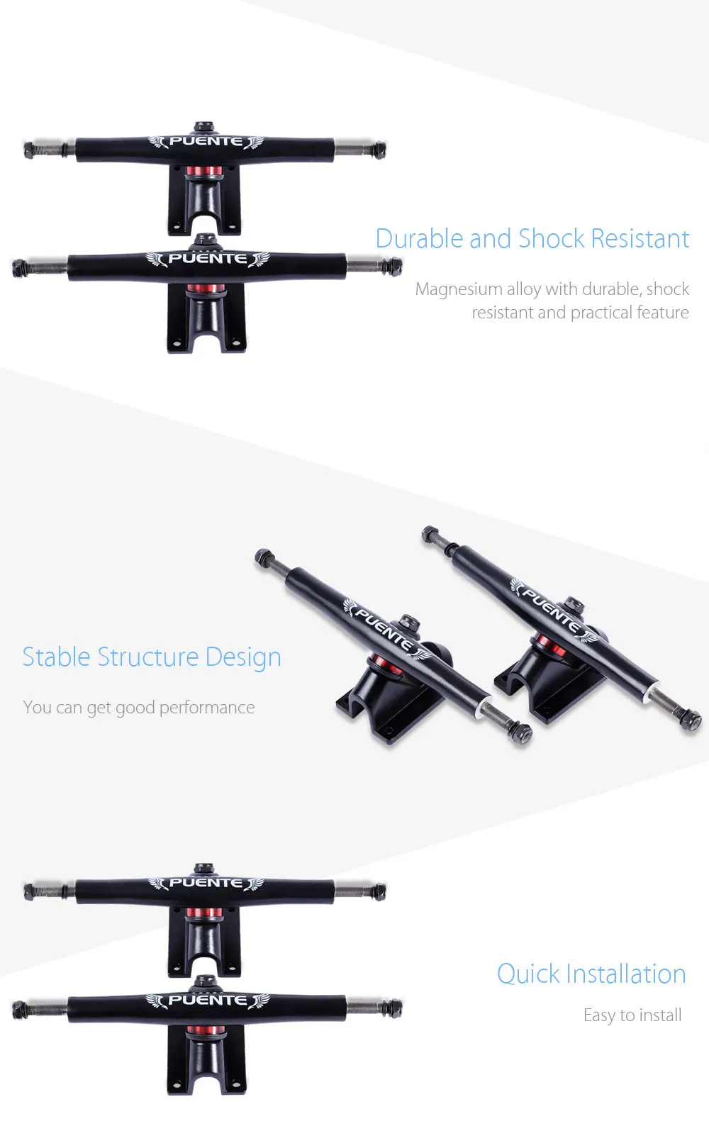 Upgrade your skateboard setup with the Puente Skateboard Bracket, engineered to deliver enhanced stability, control, and performance on every ride. Made from high-quality, lightweight aluminum alloy, this skateboard bracket provides a strong and durable foundation for any skateboard, ensuring you experience smooth turns and secure landings, whether cruising down streets or mastering tricks at the skate park. Designed to withstand daily wear and tear, the Puente bracket maintains its shape and stability even with frequent use, making it ideal for both beginners and experienced riders.