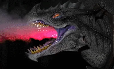 includes a fog machine and LED light that fits inside the head so that your Dragon Legends prop can blow "smoke and fire."