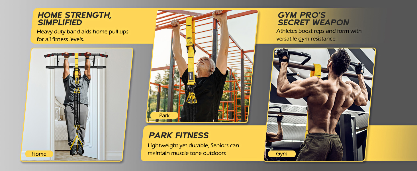 - Build Upper Body & Core Strength: The pull-up is a full-body exercise that engages multiple muscle groups—arms, shoulders, back, chest, and core. Our Pull-Up Assist Bands also help activate leg muscles for balanced strength development. these workout equipment enable you to build upper body strength efficiently, accelerate progress toward fitness, strength, and weight management goals, and maintain long-term results in muscle tone and overall good.