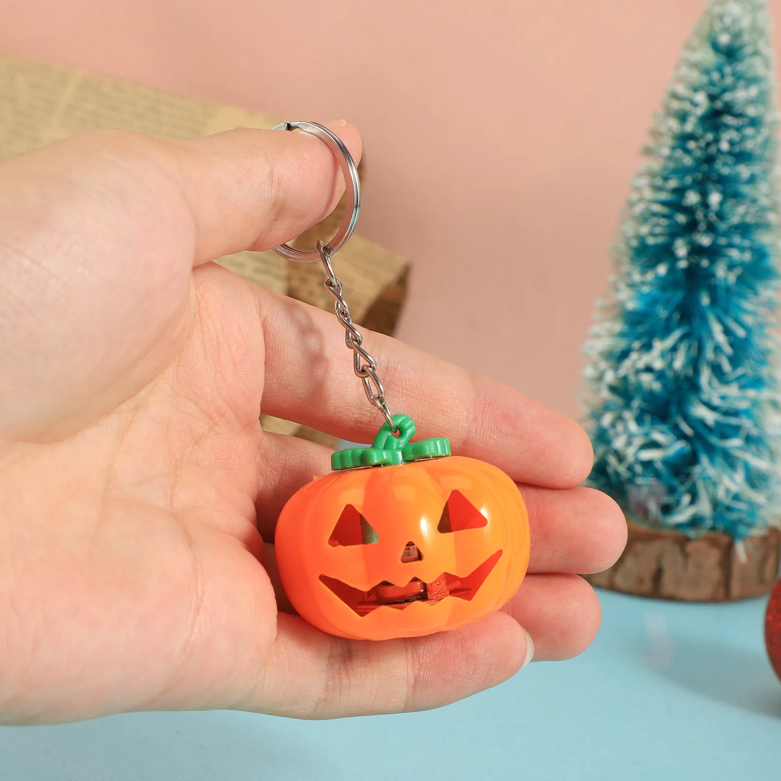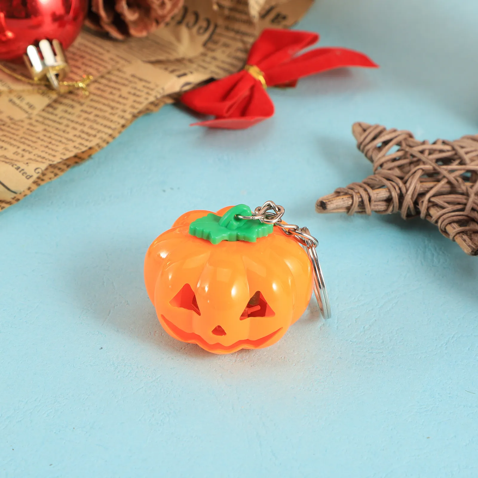 Model: Halloween pumpkin key chain luminous LED key chain suitable for indoor