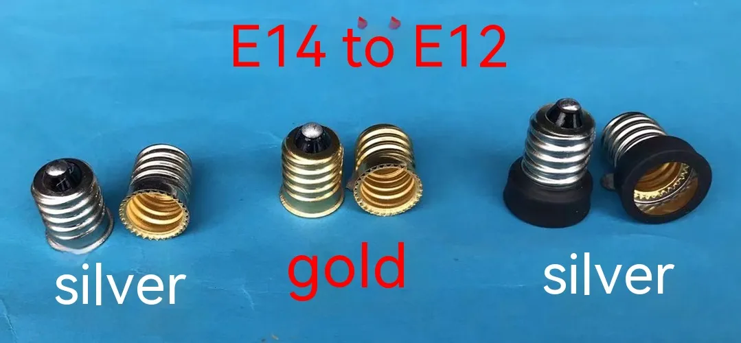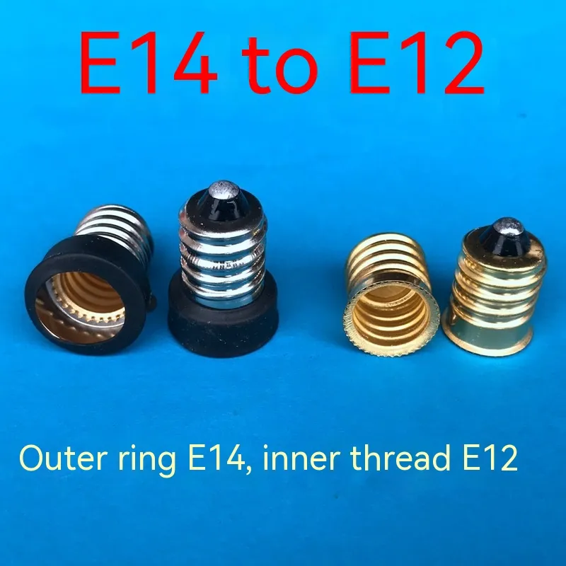 This adapter allows E12 light bulbs to fit into E14 sockets, providing flexibility for various lighting setups.