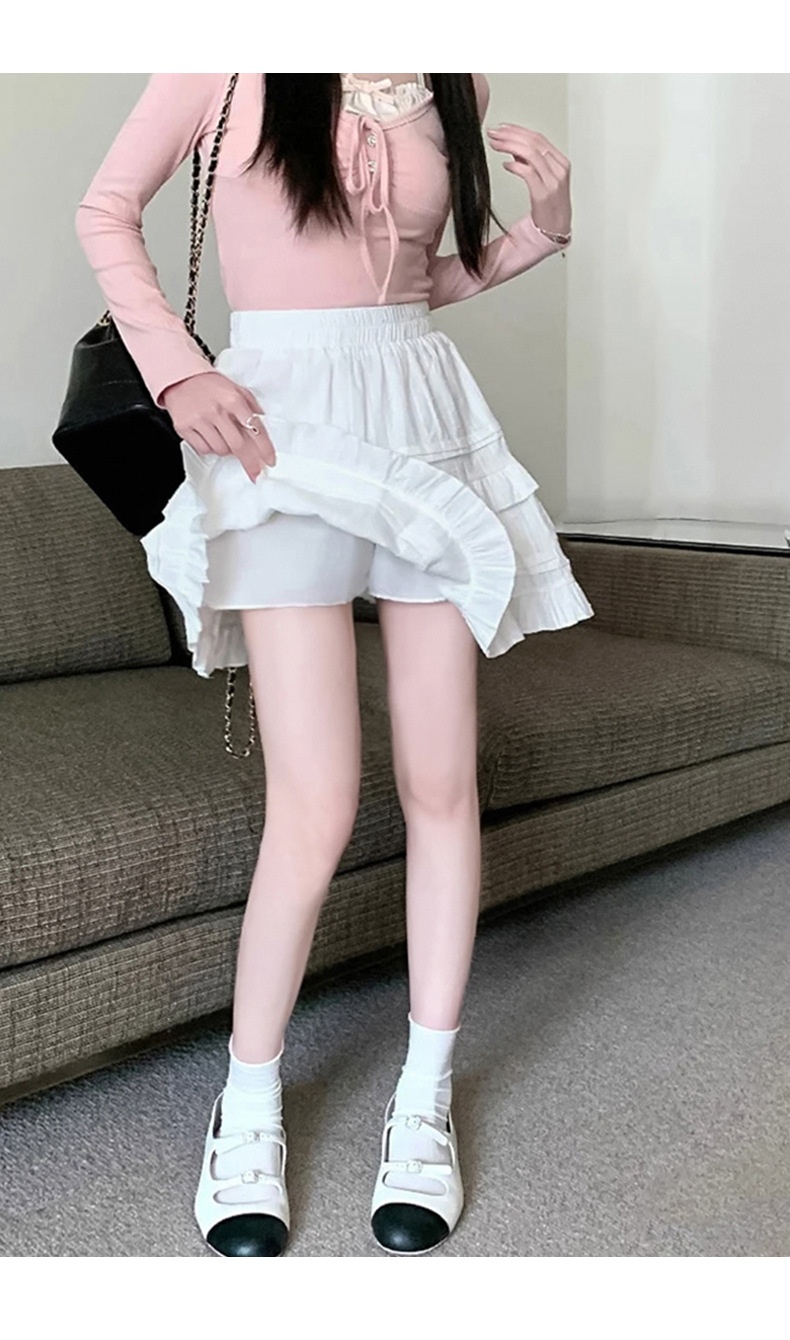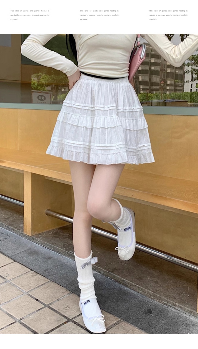 Pure Cotton Ballet Style White Lotus Leaf Border Light Skirt