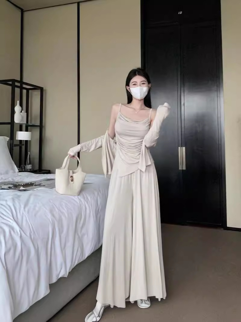 Pure Desire Style Suit: Women's Camisole and Draping Casual Wide-Leg Pants for Spring and Autumn