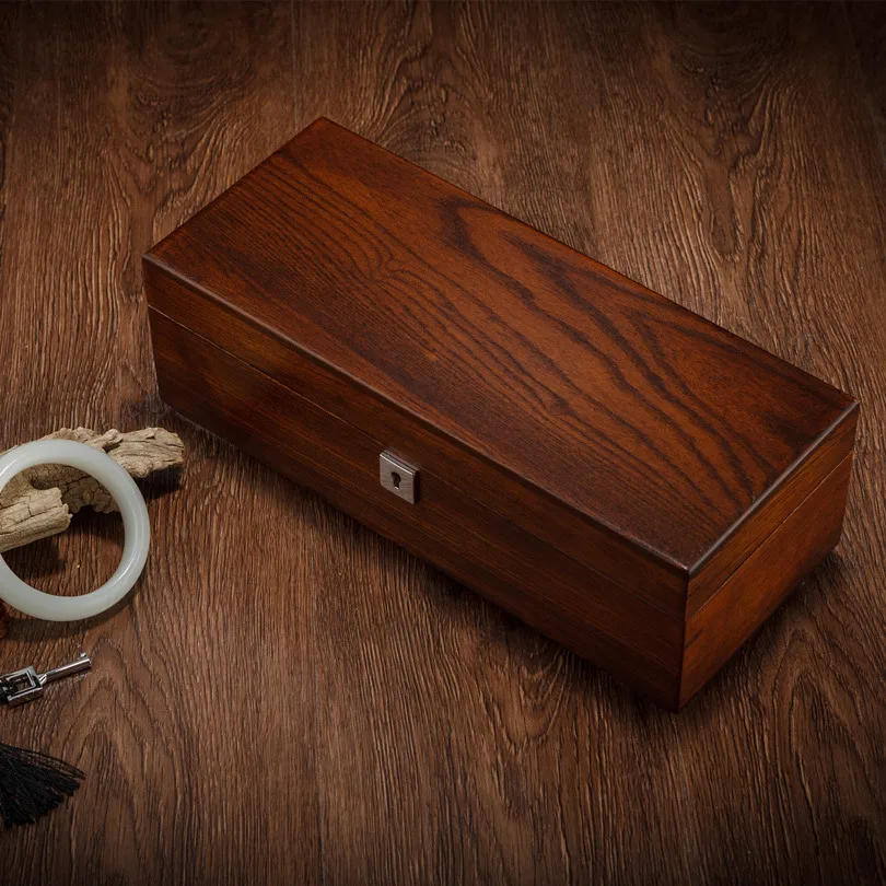 Pure Solid Wood Double-layer Jewelry Box With Lock