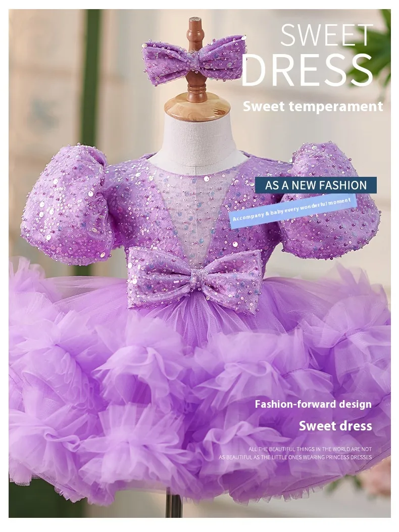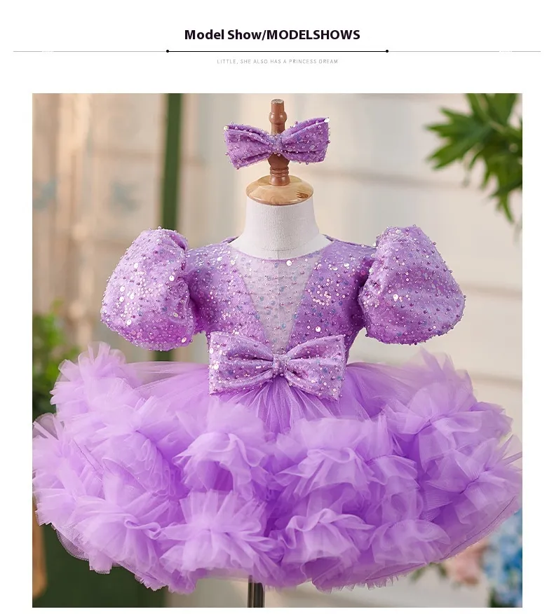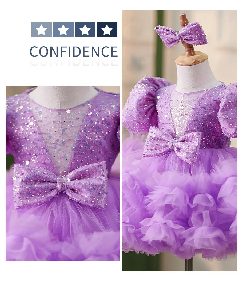 The Purple Sequin Model Tulle Tutu Skirt Girls' Dress is a stunning blend of sparkle, elegance, and fun, making it the perfect choice for your little one’s next special occasion. Featuring a beautiful sequin top and a fluffy tulle tutu skirt, this dress is designed to make every moment unforgettable. Whether it's for a birthday party, family gathering, or any other event, this dress ensures your child will feel like the star of the show.