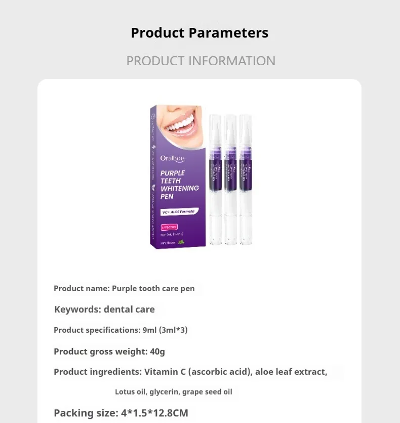 In conclusion, the Purple Tooth Care Pen is an exceptional product that makes maintaining oral hygiene simple, effective, and convenient. Whether you're looking to freshen your breath during a busy day or remove plaque and stains from your teeth, this pen is a perfect solution. It fits into your lifestyle seamlessly, offering long-lasting freshness and cleanliness with just a few easy steps.