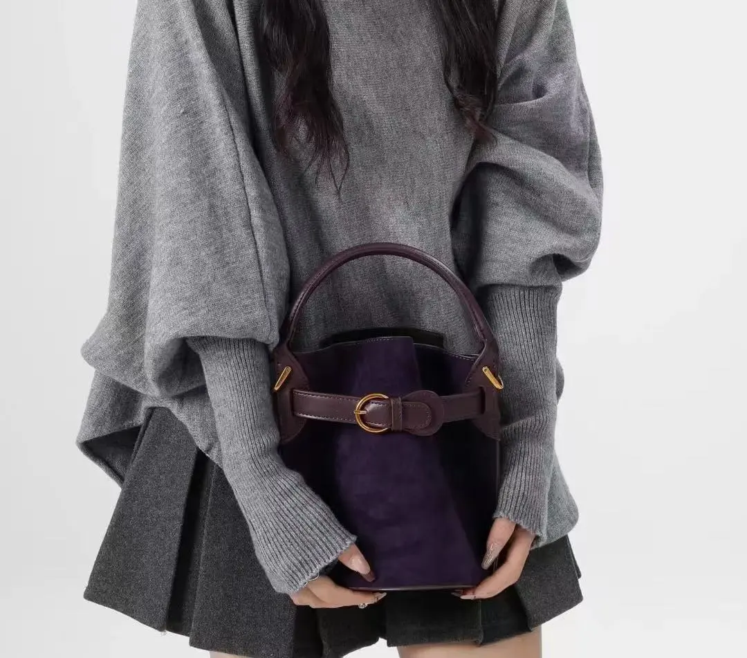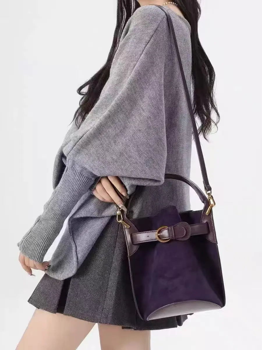 Ideal for New Zealand women who want a stylish, functional, and unique bag, this purple velvet bucket bag is the perfect statement accessory.