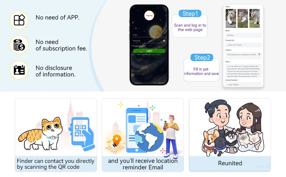 - Enhanced Pet Safety: Provides a quick way for finders to contact you, reducing the time your pet is lost.