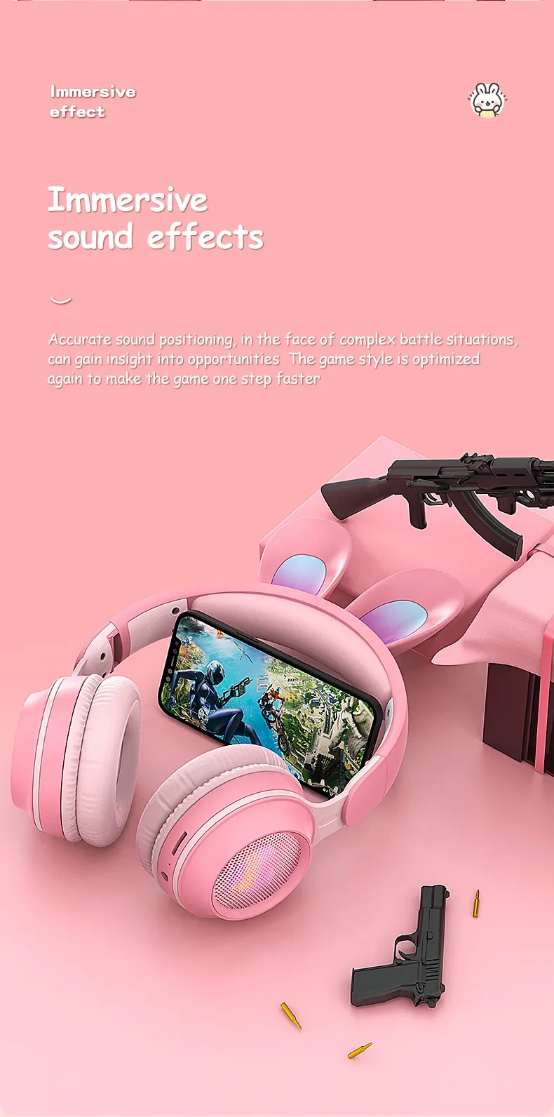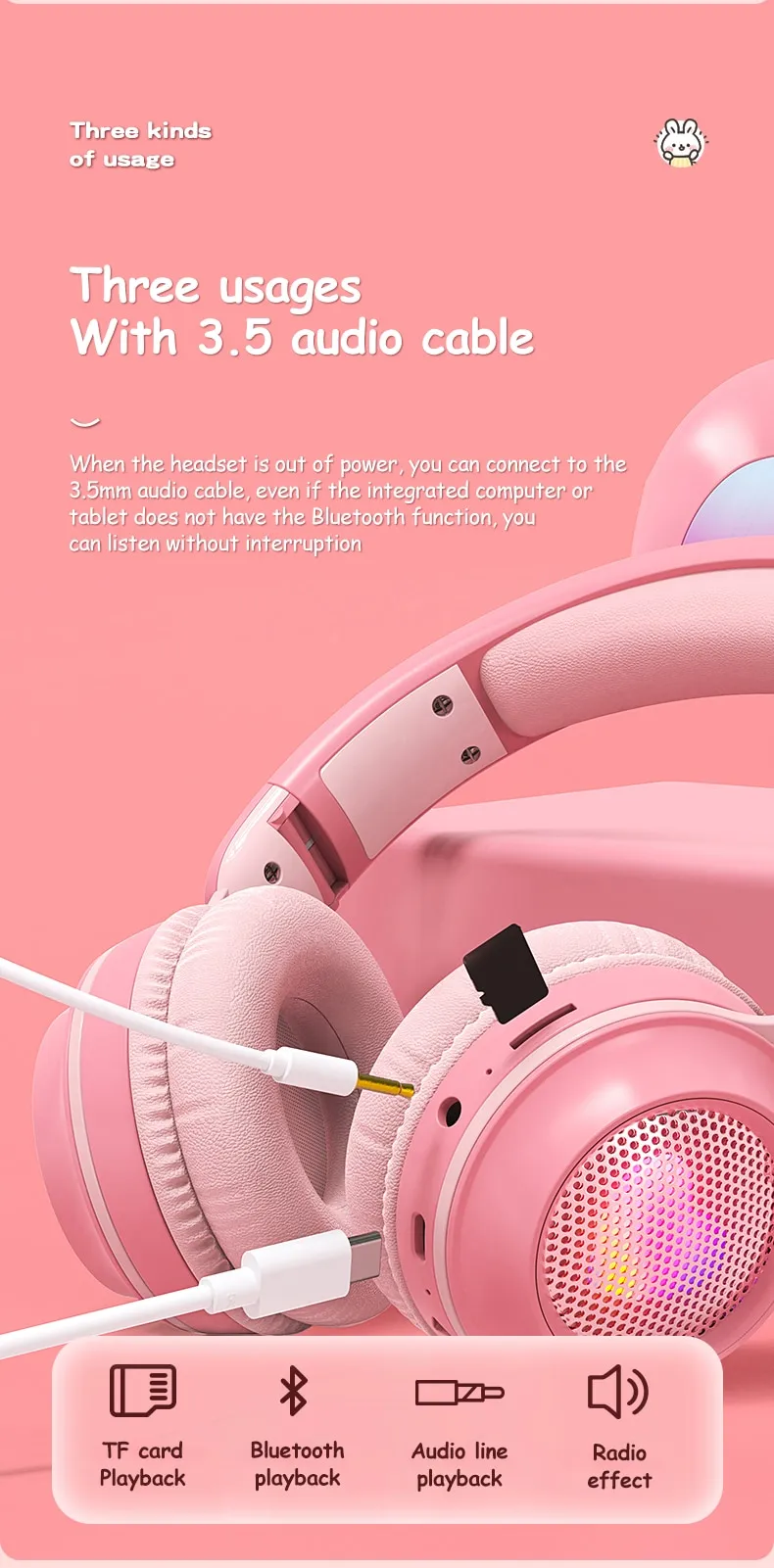 10. leuke RGB Konijnenoren draadloze koptelefoon, kinderen vakantie cadeau oortelefoon.