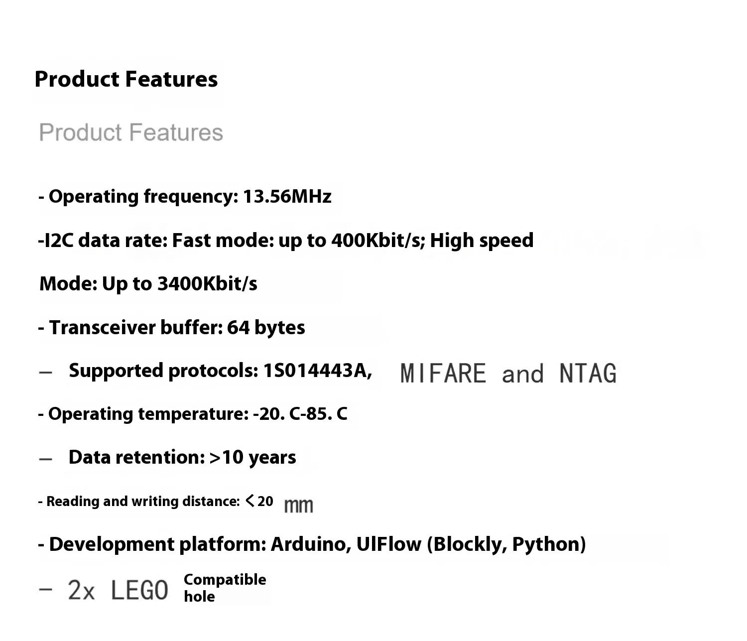 4. Supported protocols: ISO14443A,MIFARE, and NTAG