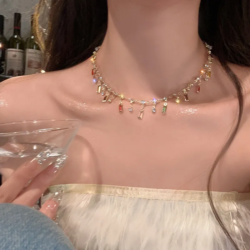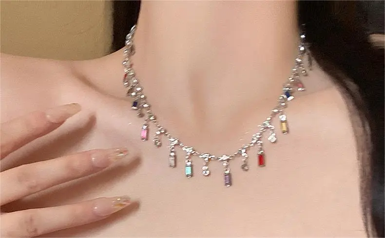 Rainbow Color Fringed Zircon Necklace For Women Light Luxury Minority Design Advanced Sense