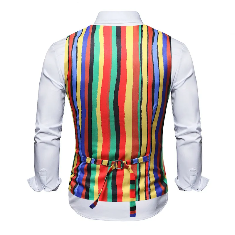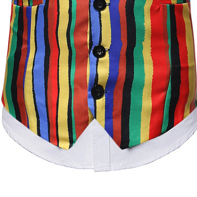 In addition to its vibrant design, the rainbow waistcoat offers a comfortable and flattering fit, making it suitable for various occasions. Its versatility means it can be dressed up or down, allowing you to wear it in both casual and formal settings.