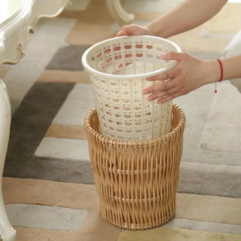Rattan trash can