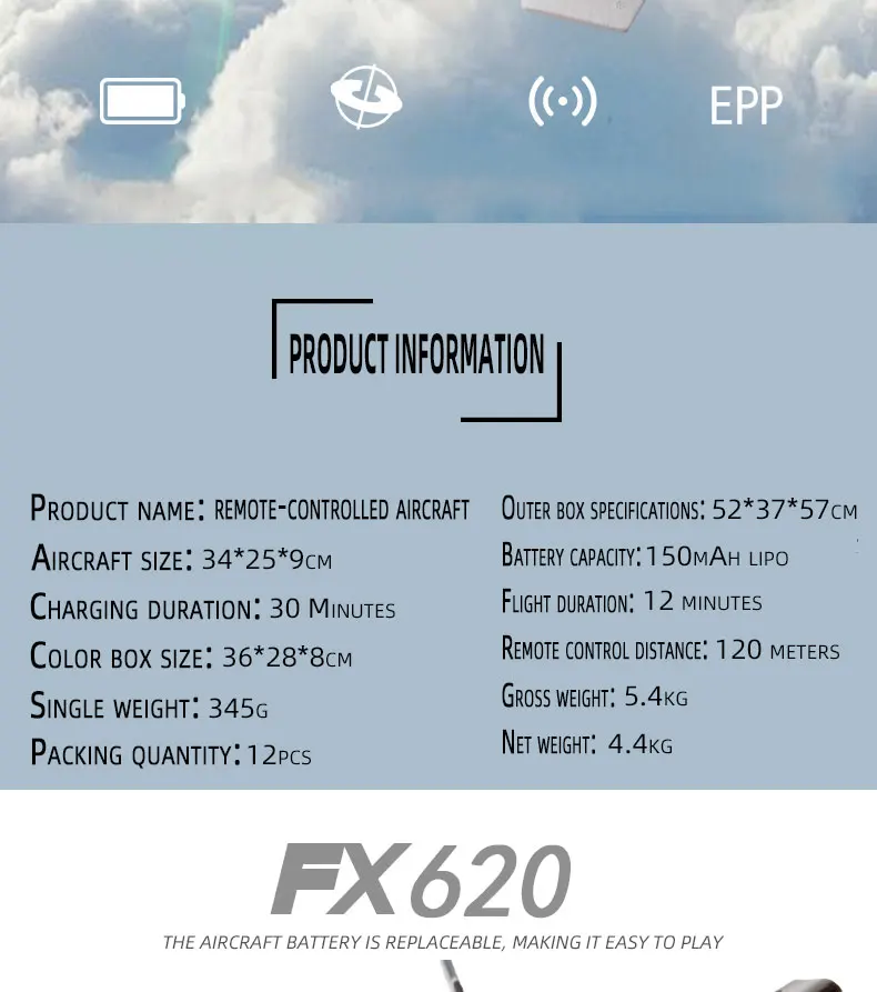 Operate,Easy to Fly.Material: Durable EPP+ABS PlasticRemote Control Distance: ≤120mFlight Time: 12min-15minBattery Capacity: 3.7V 160 mAh