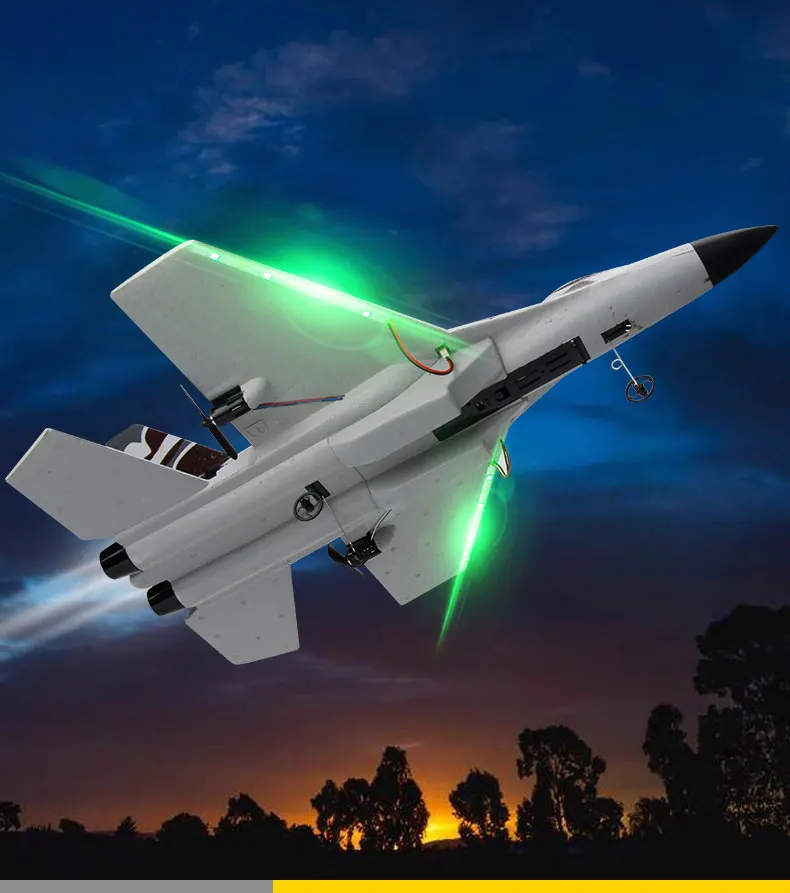 This RC glider uses advanced 2.4GHz radio control technology, which ensures interference-free control even when flying in a crowded environment. The 2.4G frequency offers precise, reliable control with minimal delay. Unlike traditional RC planes that operate on lower frequencies, the 2.4GHz system allows multiple planes to fly at the same time without signal interference. This feature makes the SU-35 RC fighter plane perfect for group play, allowing kids and friends to race or perform stunts together without any issues.