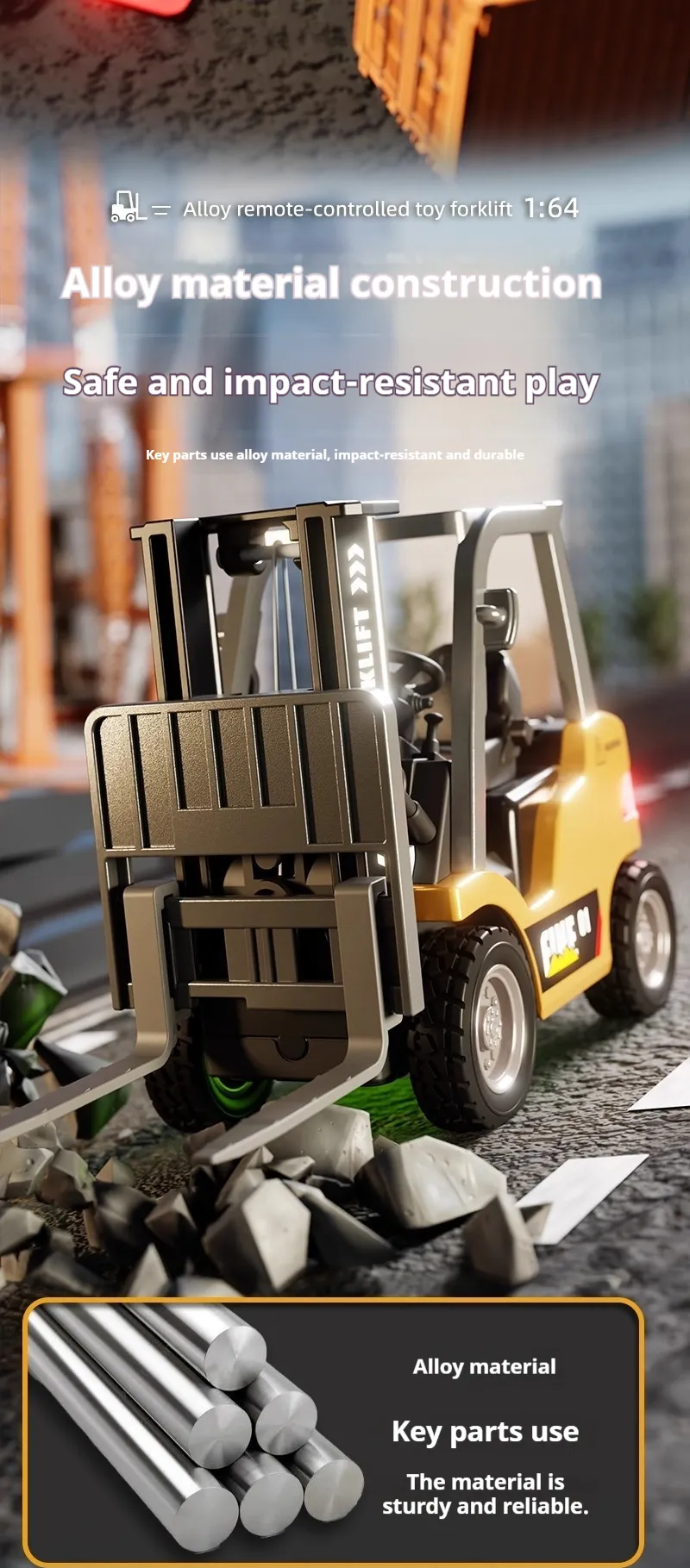 Combine with pallets, crates, and other RC construction vehicles for immersive scenarios.