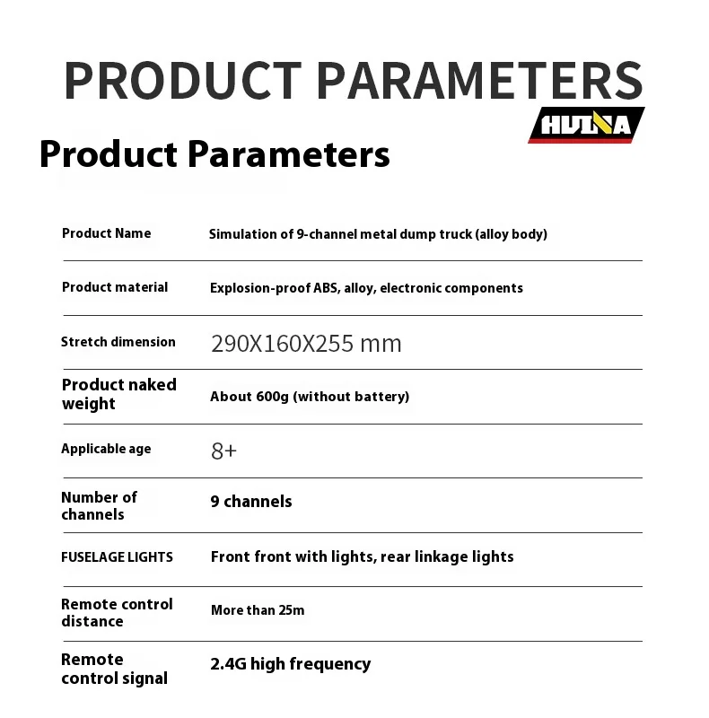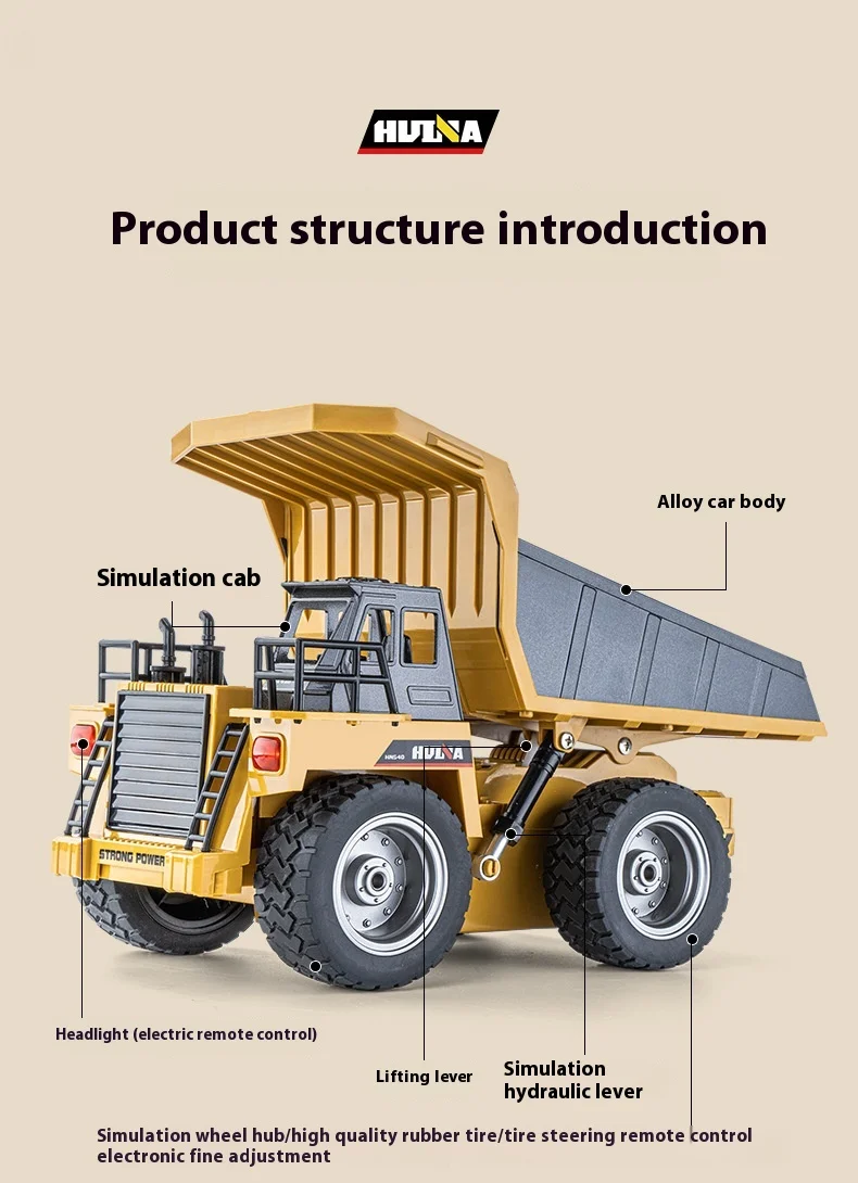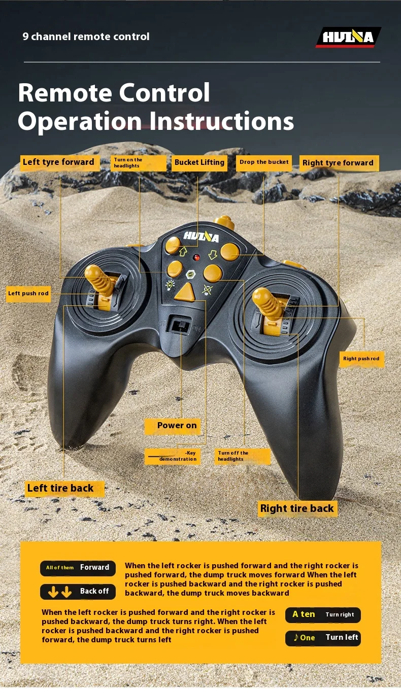 2. Key Features of the RC Series Huina 1533 Nine-Channel Remote Control Dump Truck