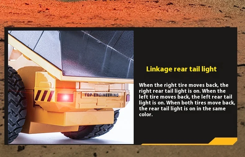 The nine-channel control system provides full functionality for the RC dump truck and bulldozer, offering precise control over movements such as forward, backward, left, right, lifting the bucket, and dumping materials. The multiple channels allow for smooth and detailed operations.