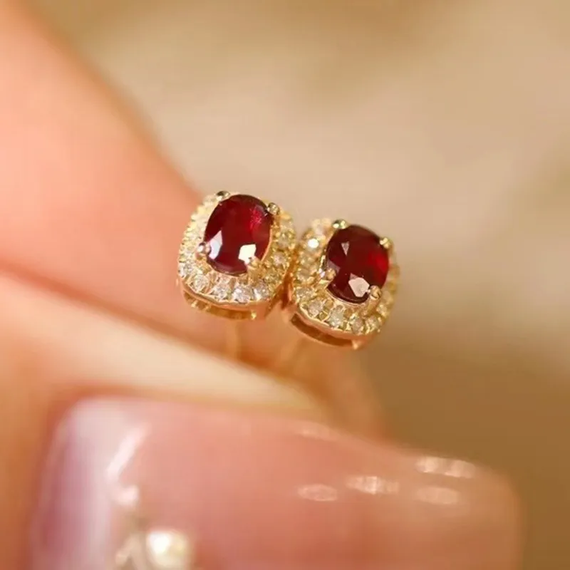 How to Style the Real Gold Natural Ruby Diamond Stud Earrings