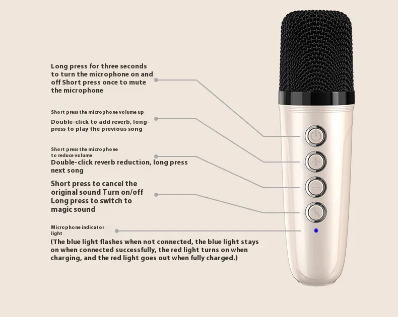 Once the microphone is set up, let the child start exploring. They can sing along to the built-in songs, use the microphone to perform their own creations, or play music through Bluetooth and sing along. Many microphones come with a built-in speaker, so no external speakers are needed.