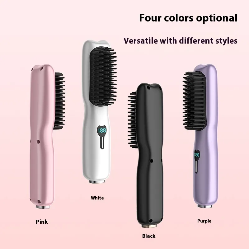 Rechargeable Wireless Straightening Comb 220 Hair Straightener Brush USB Rechargeable Flat Iron LCD Display Temperature