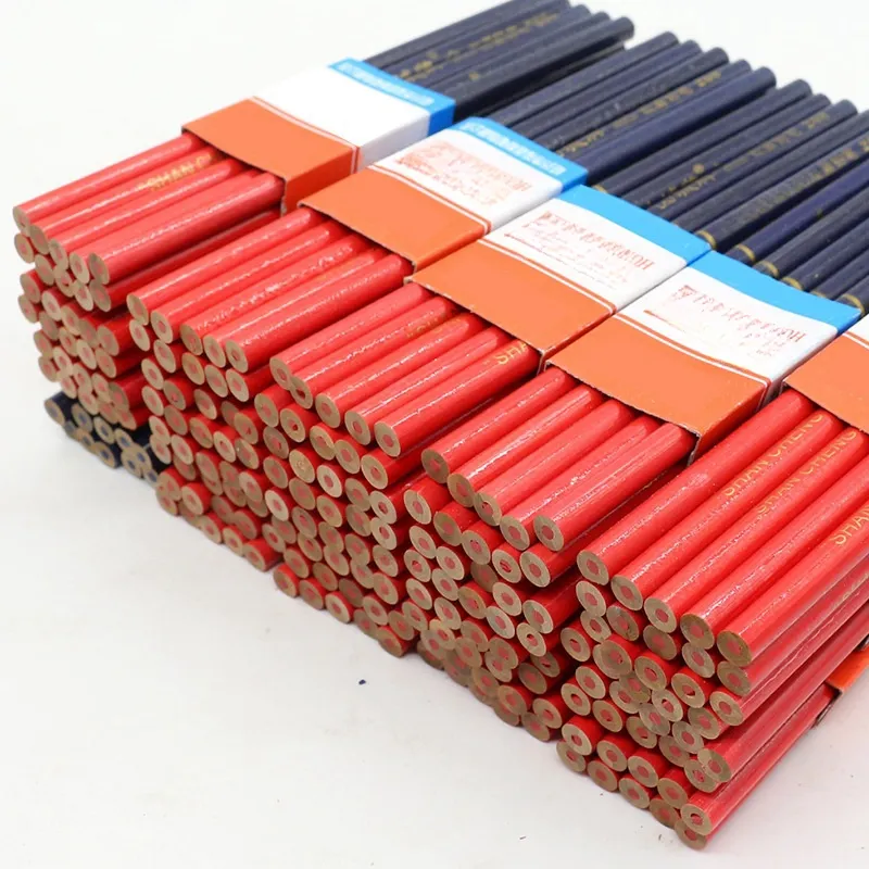 Red And Blue Two-color Carpenter's Pencil Round Marking Pen Engineering Wooden Pen