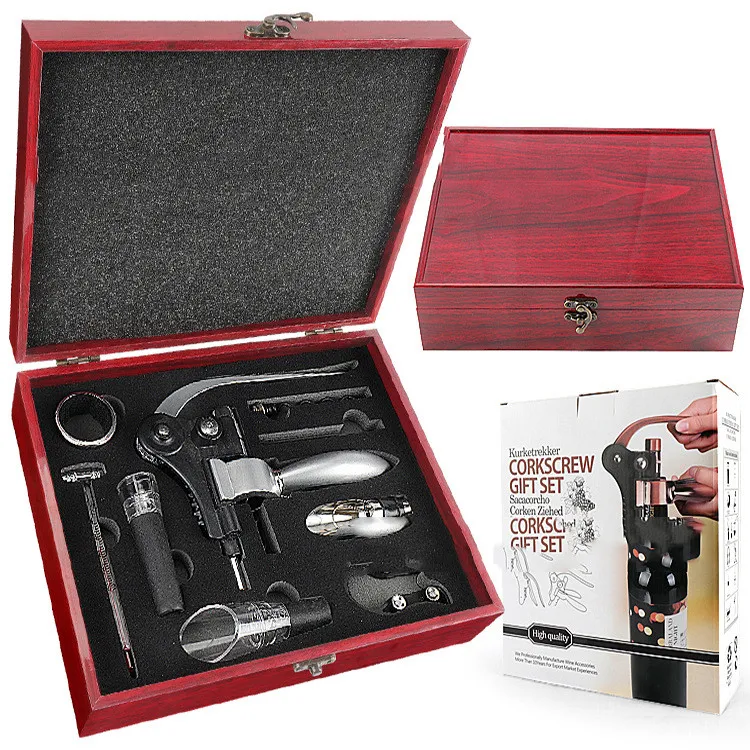 Bottle opener*1, paper cutter*1, wine ring*1, wine pourer*2, wine thermometer*1, vacuum stopper*1, wire drill*2
