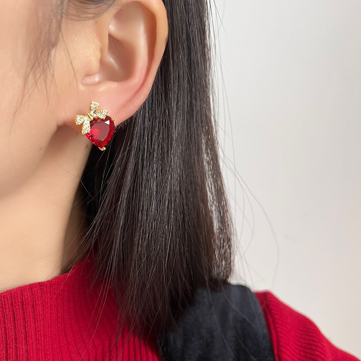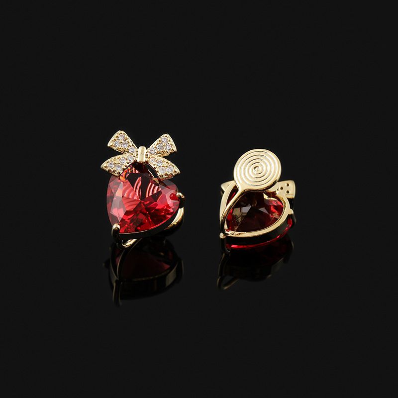 Red Loving Heart Zircon Earrings Bow Ear Clip