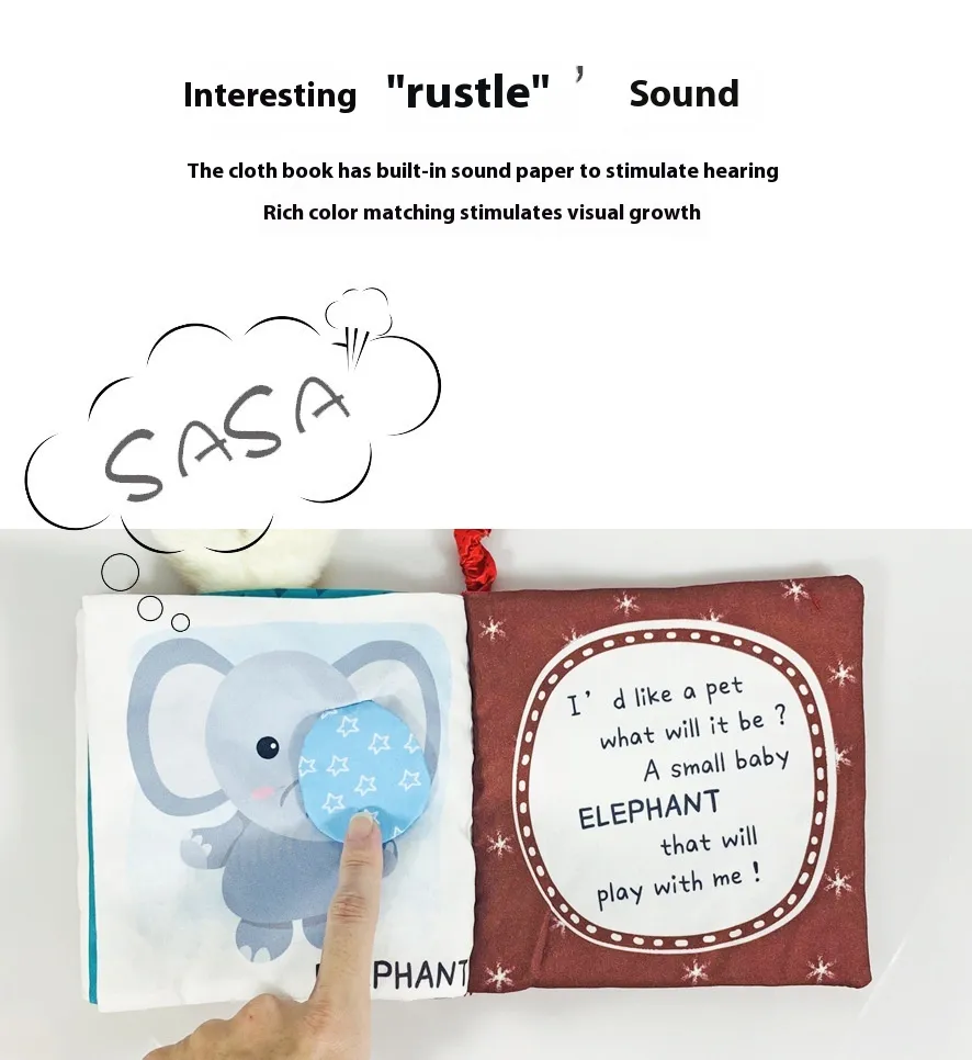 The Red New Style Black Scene Babies' Cloth Book is designed with interactive features to keep babies engaged. Some of these features include: