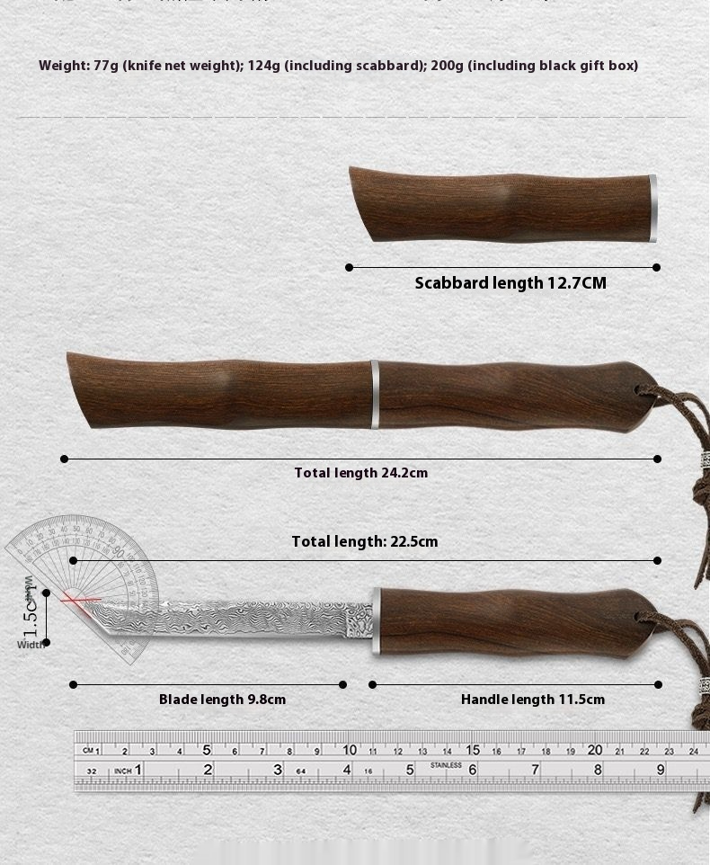 - Elegant and Functional: Own a knife that not only performs exceptionally but also adds a touch of elegance to your gear with its red sandalwood handle and intricate design.