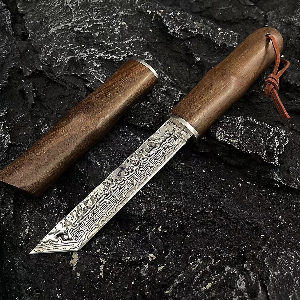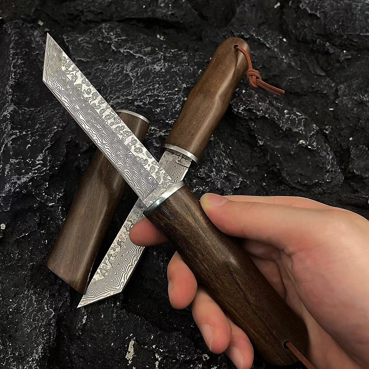 Upgrade your outdoor equipment with our Red Sandalwood Damascus Steel Straight Sheath Knife. Order now and experience the perfect blend of tradition and innovation for all your outdoor adventures!