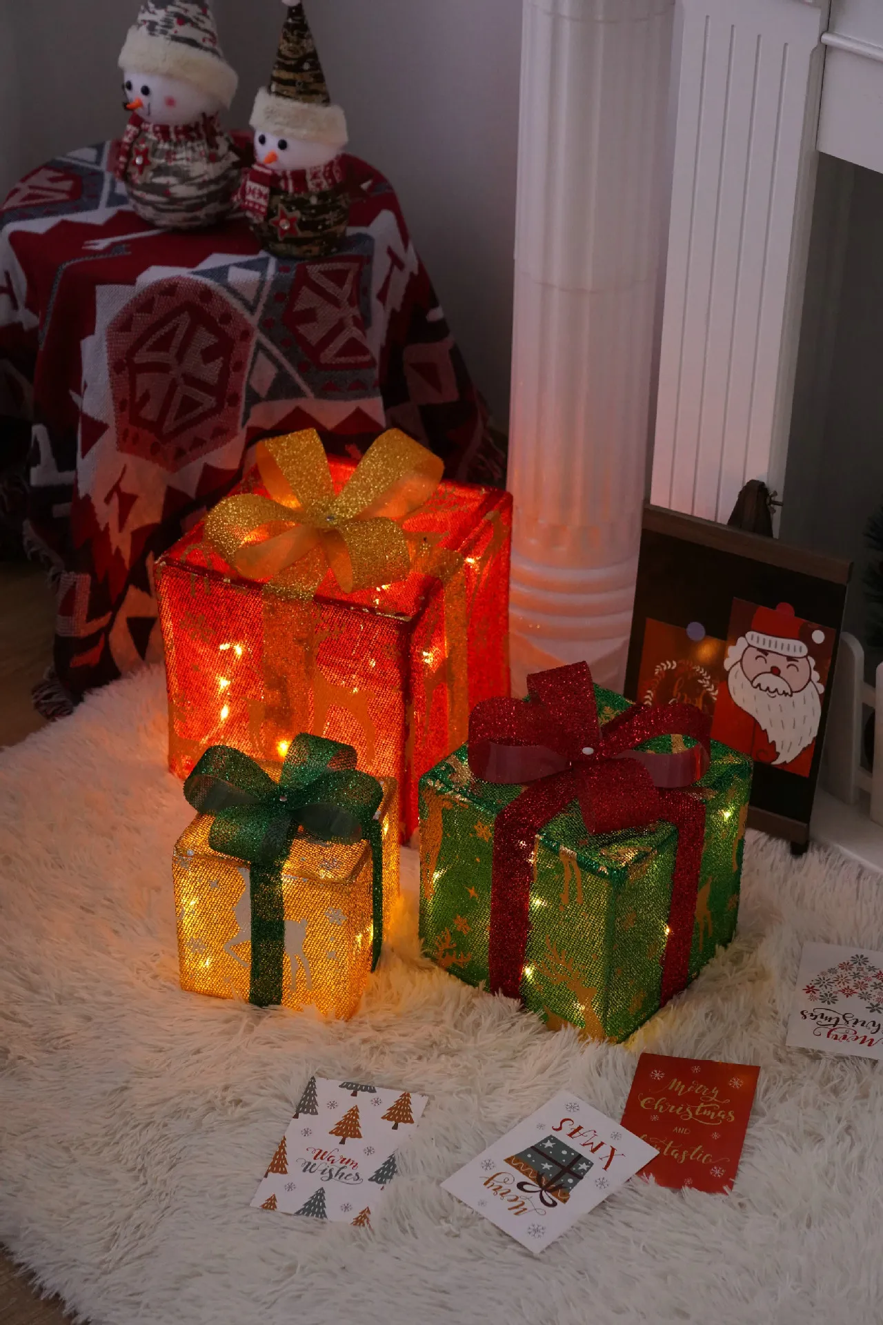 Remote Control Christmas Gift Box Lights Christmas Three-piece Decoration