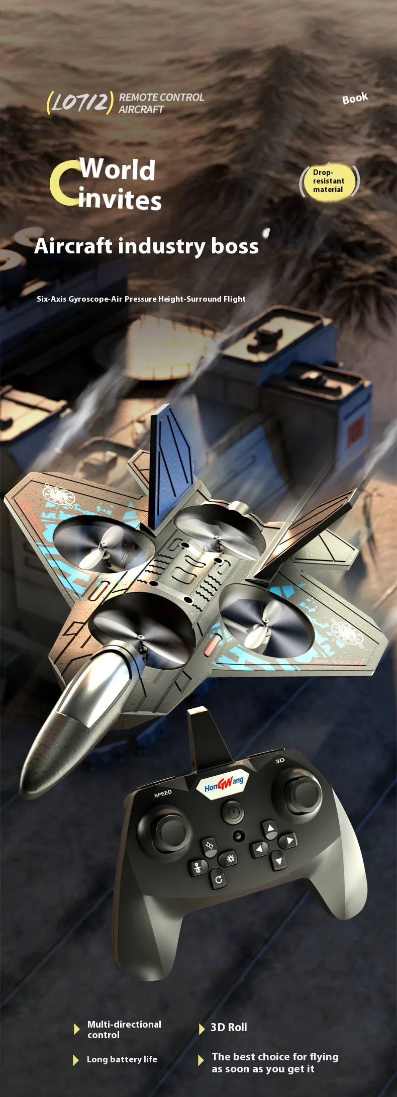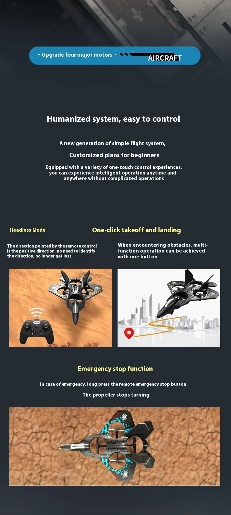 Features: One-Touch 360 ° stunt tumbling; Fixed-point surround flight "fallen leaves floating"; Fixed air pressure, keep hovering; One-click
