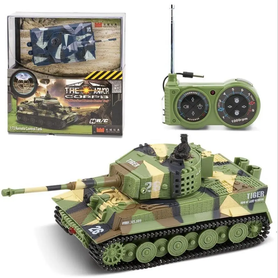 The Remote Control Mini Tank Tiger Military Model features a rotating turret and adjustable cannon, allowing users to simulate realistic battle movements. The turret can rotate smoothly, while the cannon adds an extra interactive element, making the tank more engaging to operate and display. These interactive features make this model an excellent choice for those who enjoy immersive RC experiences or want a military model with functional detailing.
