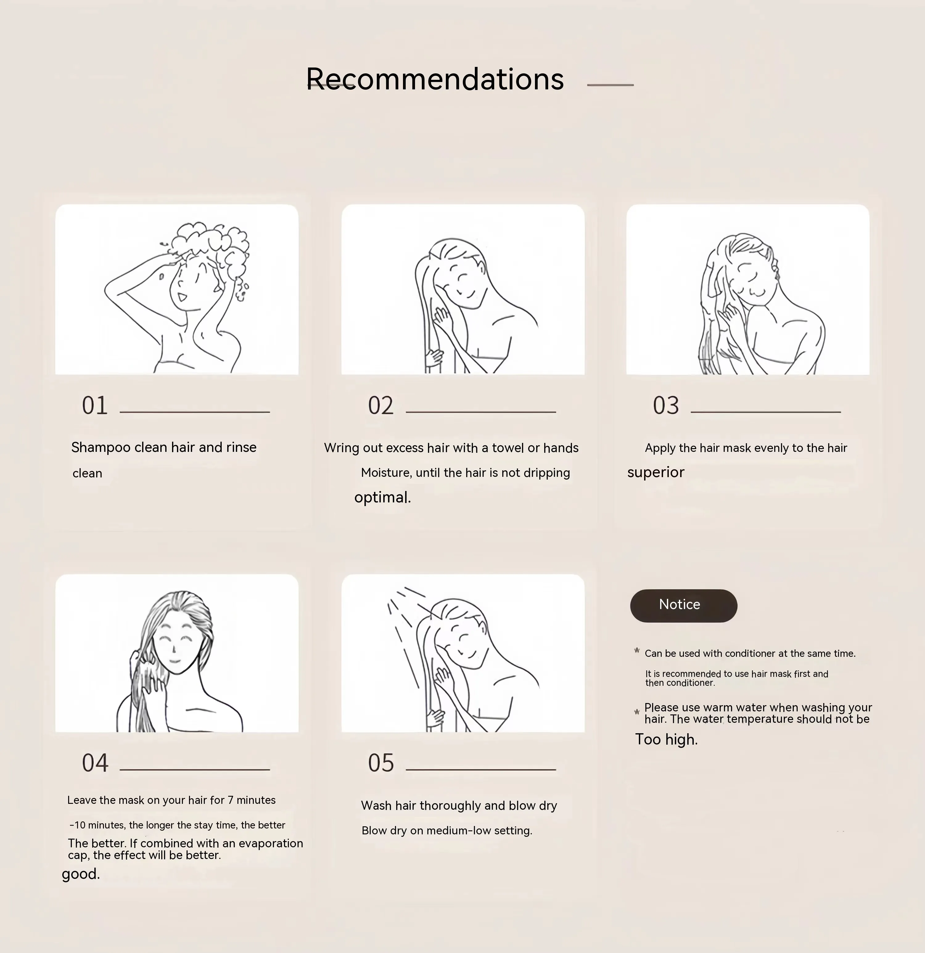 Effect: Improve irritability, dyeing and scalding damage, care for damage, repair, soften, and nourish deep layers