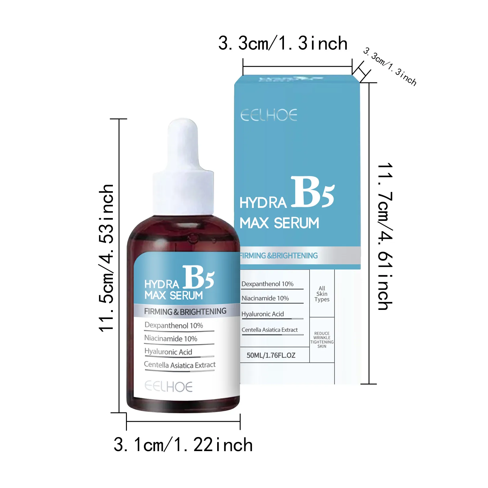 Ingredients: Water, vitamin B5, nicotinamide, hyaluronic acid, ascorbic acid (vitamin C) asiatic centella extract